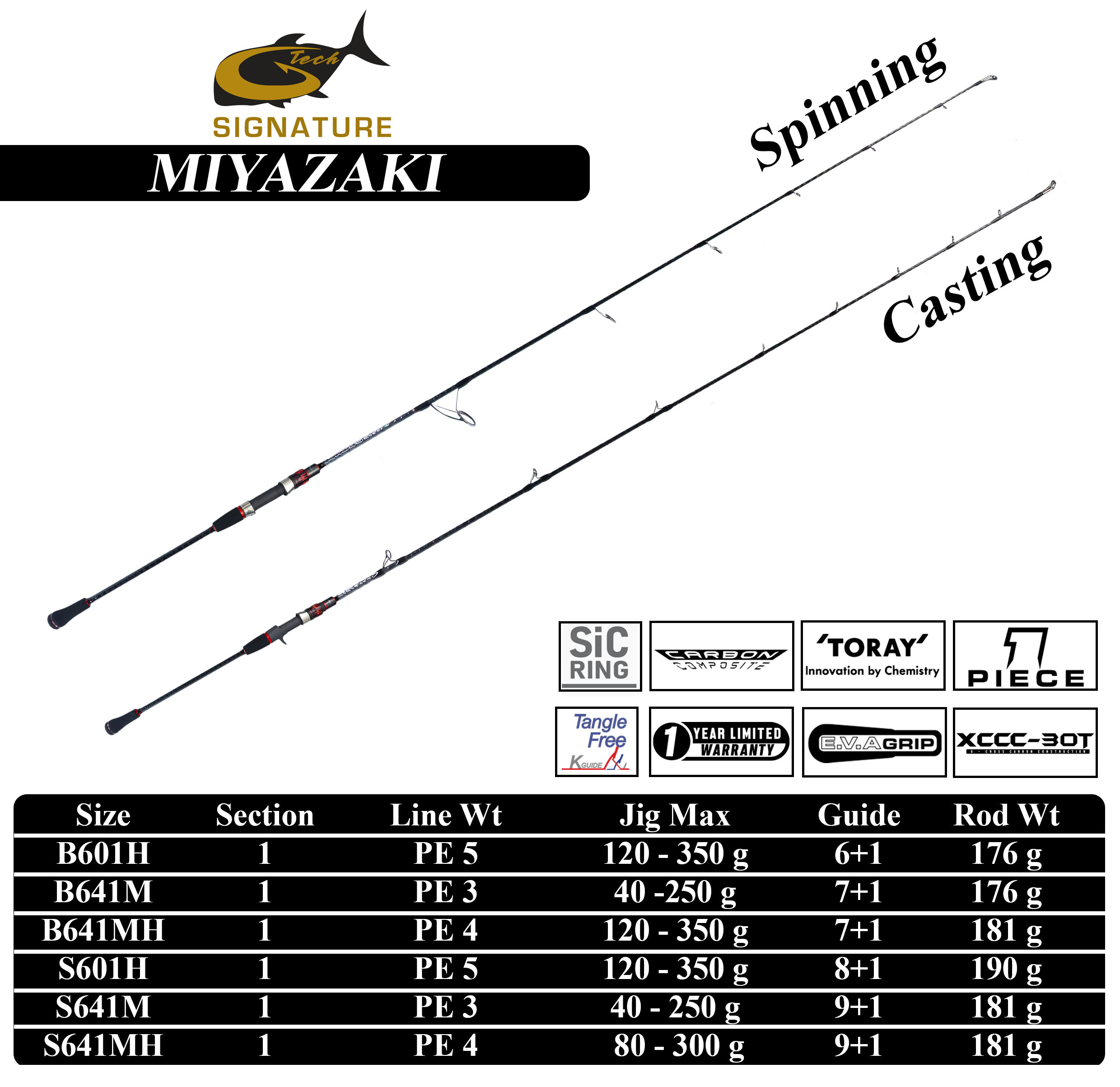 ModelPeLength (ft)Lure (g)Line WtSectionGuideTypeSRP (RM)